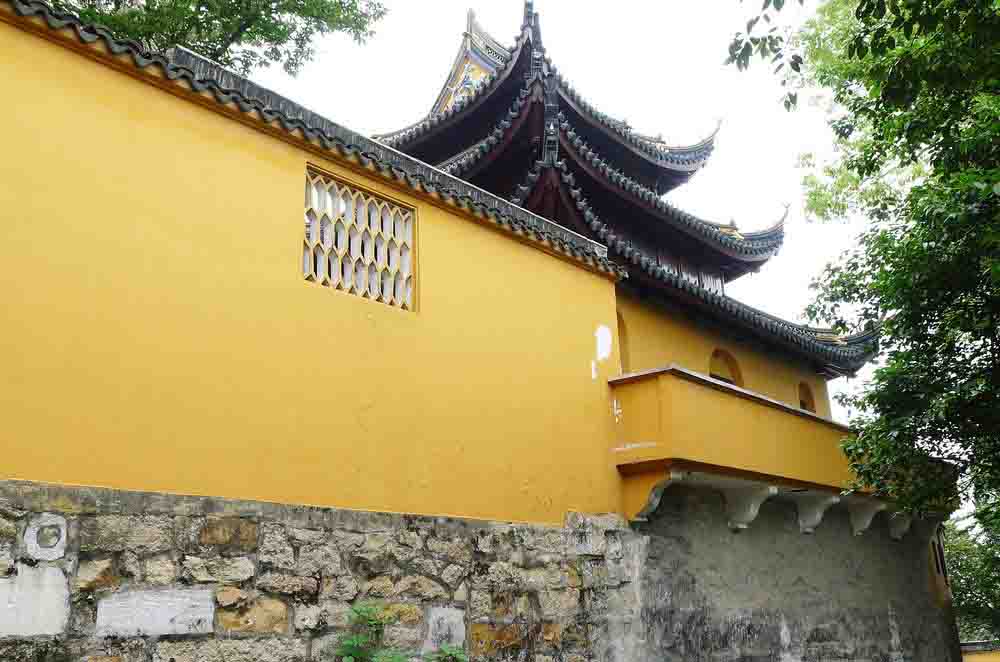 沿著山路往上走,大概花費1個小時左右的時間從靈巖山下到靈巖寺,黃色的外墻,幽靜。